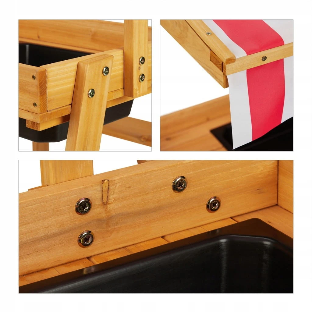 Grupa do siedzenia dla dzieci składająca się ze stolika błotnego, 2 ławek dziecięcych i uchylnego dachu zapewnia niezakłóconą zabawę na świeżym powietrzu.