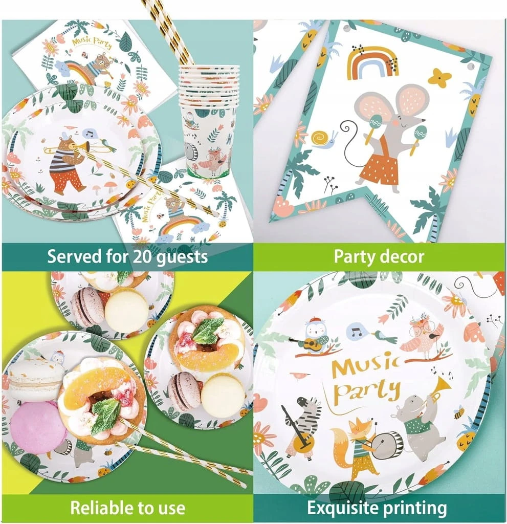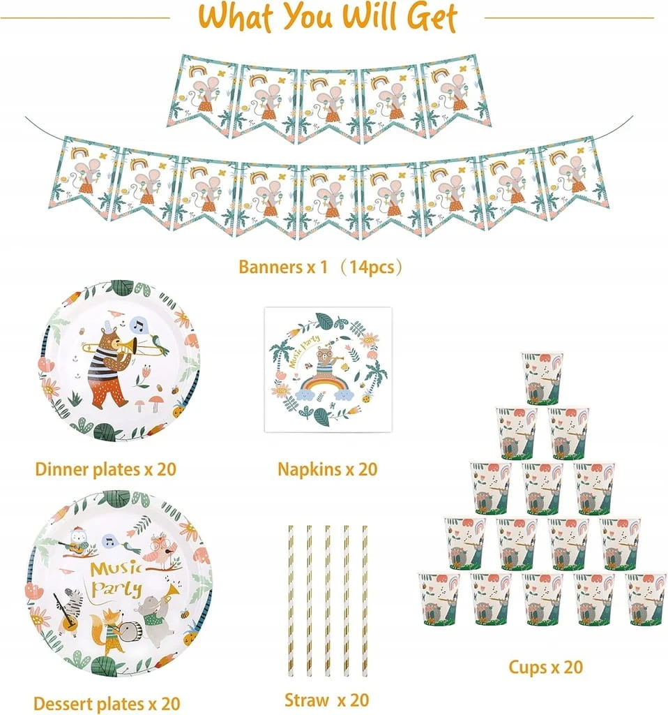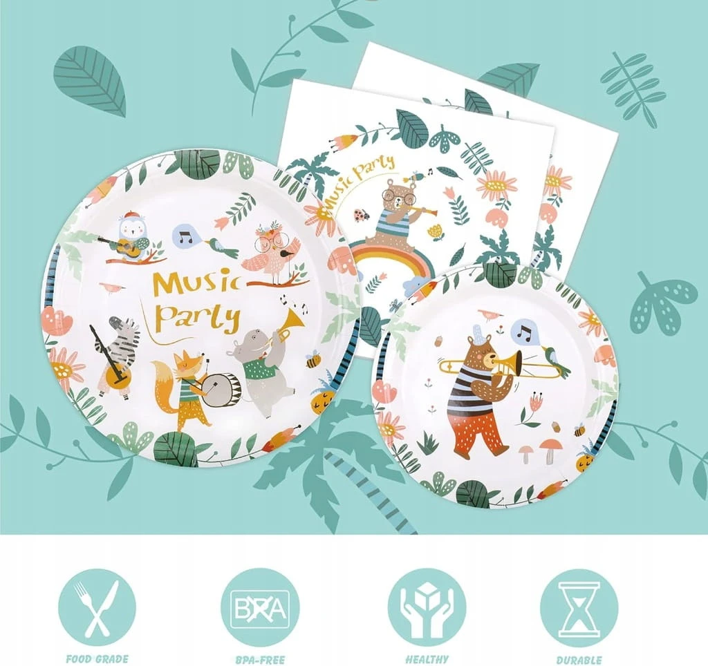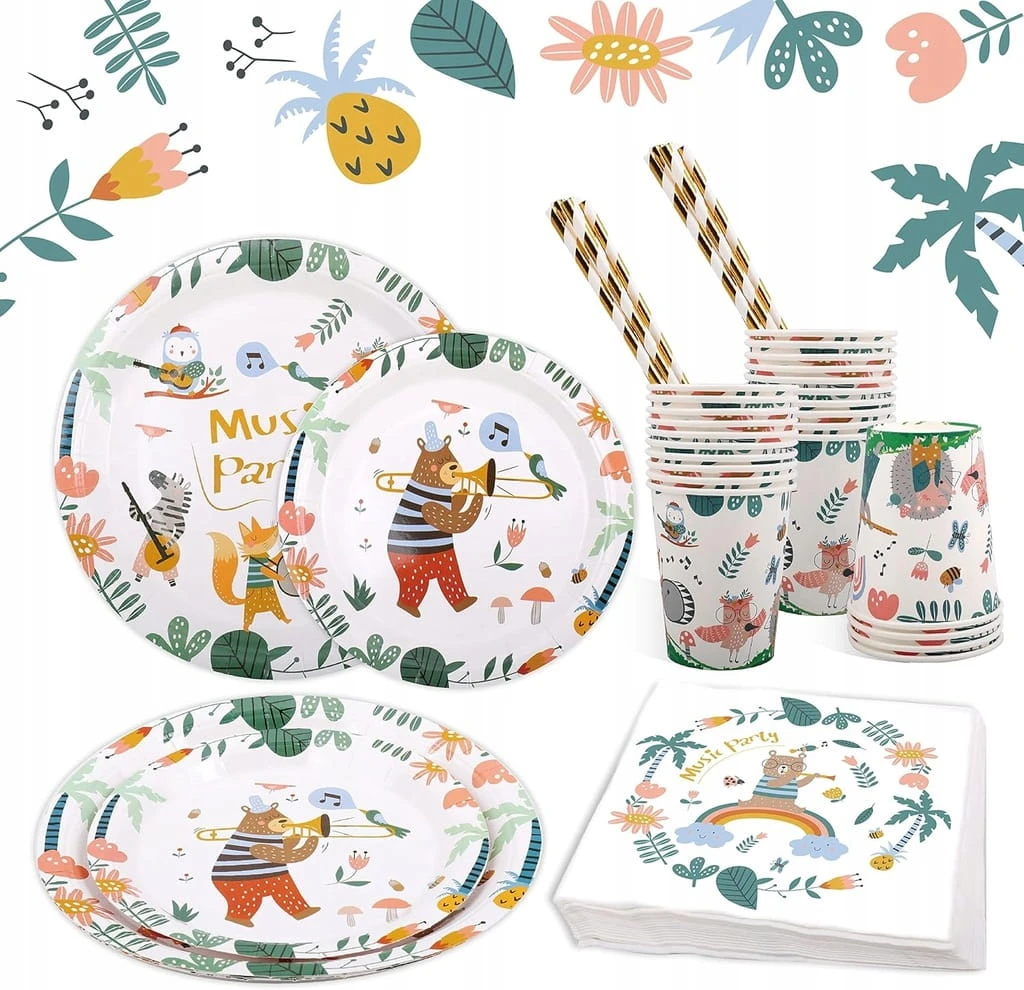 - ✅ Uroczy wzór zwierzęcy – ten zestaw zastawy stołowej został zaprojektowany z myślą o uroczym motywem zwierzęcym. Papierowe talerze, kubki, serwetki są ozdobione kolorowymi wzorami i liniami. Dodaje eleganckiego, fantazyjnego akcentu na każdej imprezie.