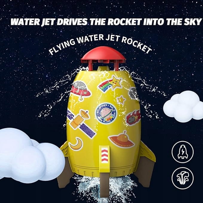 - ✅ Podłącz wąż ogrodowy do kontrolera ciągu, aby podnieść i zrównoważyć rakietę na strumieniu wody. Po zrównoważeniu rakiety dokładnie tam, gdzie chcesz, woda tryska z noska rakiety, aby zmoczyć tych, którzy są na tyle odważni, aby przebiec pod rakietą.